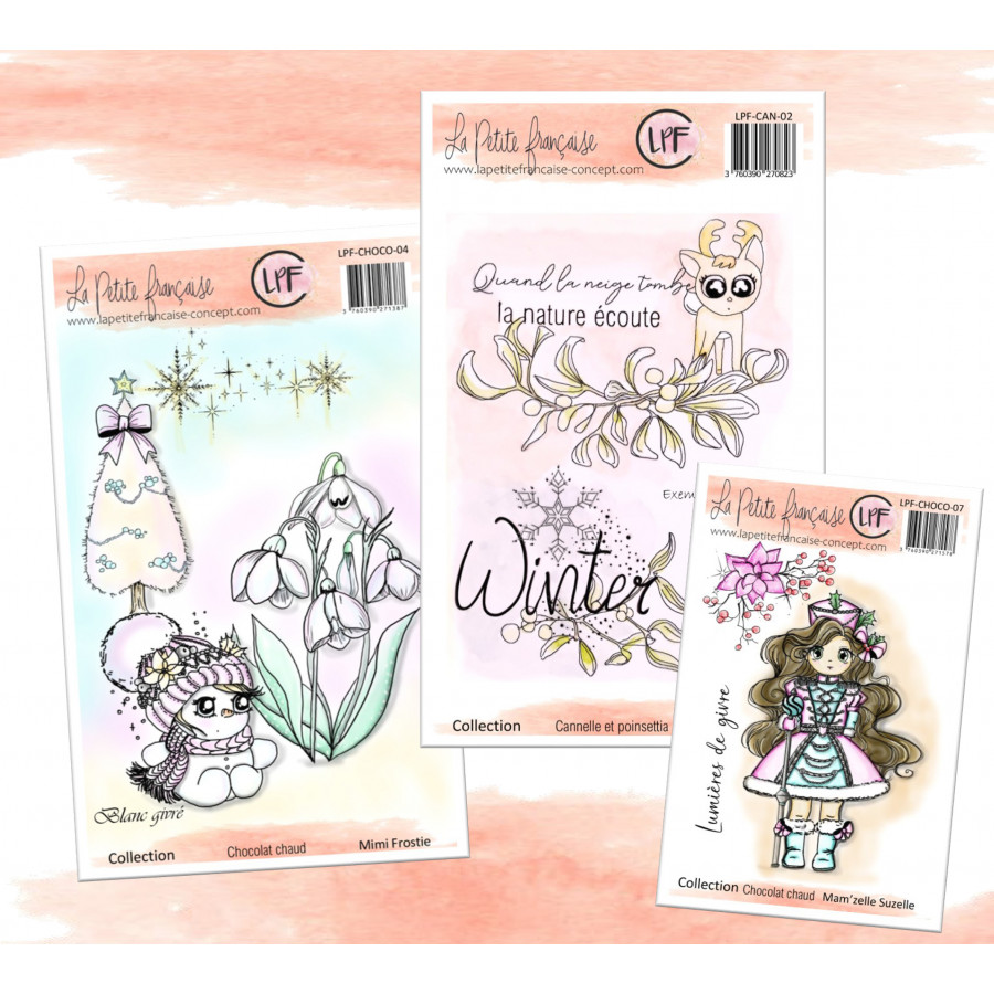 Planche de 03 tampons clear de la collection Chocolat chaud par La Petite Francaise